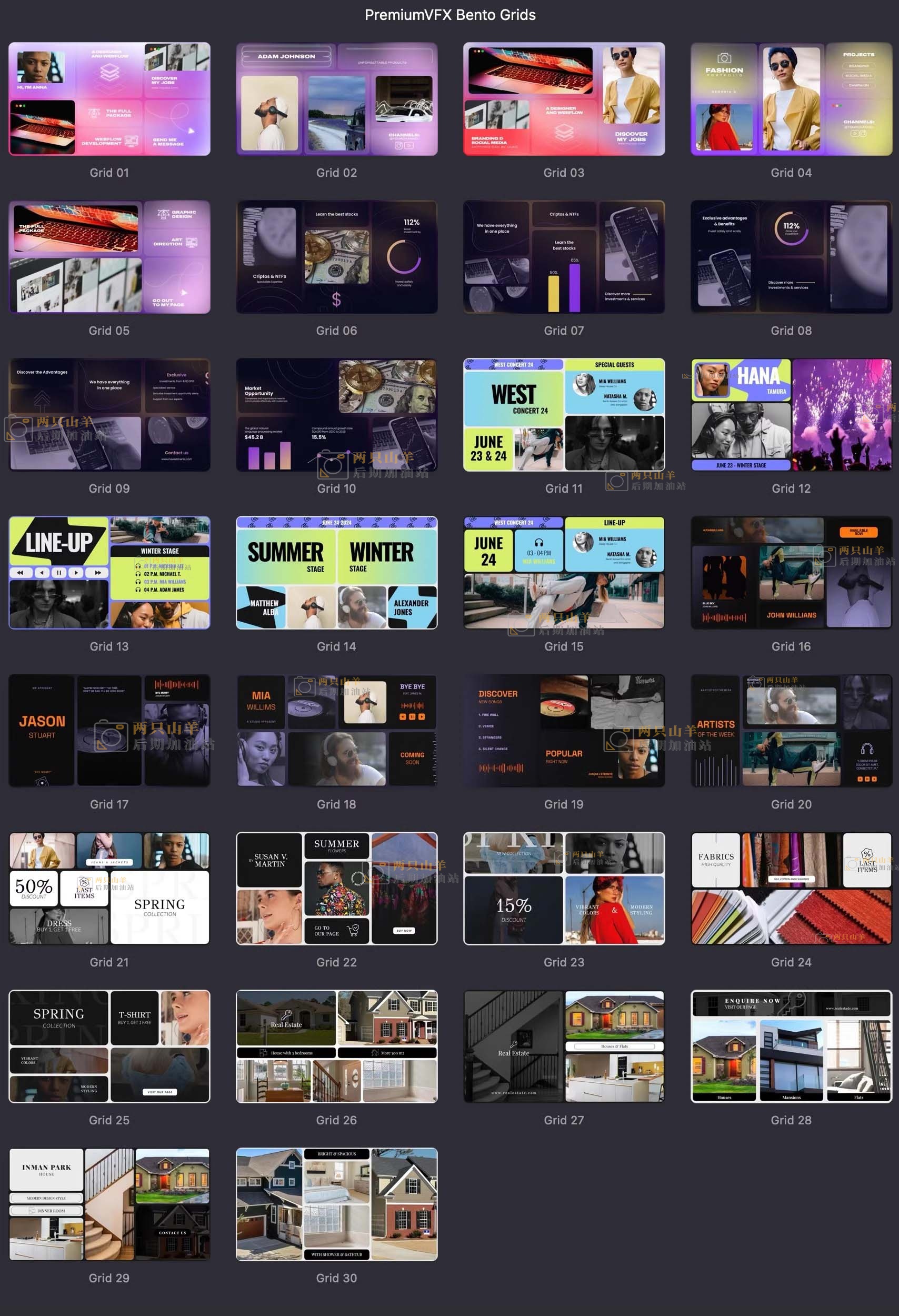 FCPX中文插件-30种简约风格网格画中画分屏效果预设 Bento Grids