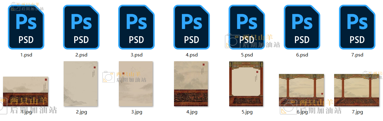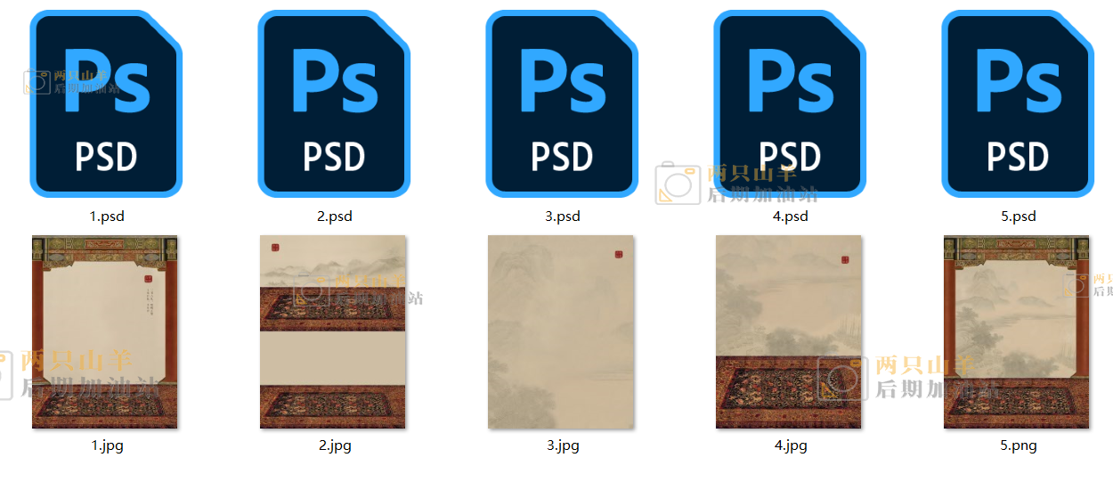 PSD模板-12款工笔画汉服婚纱照背景素材PSD模板