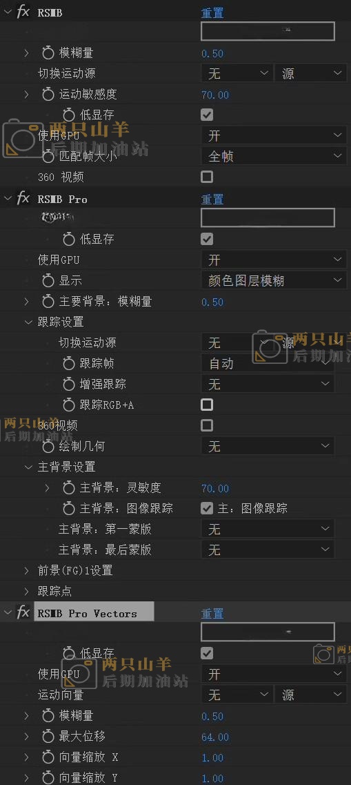 ReelSmart Motion Blur (RSMB) 是由REEffects提供的一款在AE或PR视频中自动添加自然的运动模糊效果插件。它可以自动添加更多自然的运动模糊效果。跟踪技术的核心在于ReelSmart运动模糊,无需手动设置。当然您可以添加你需要或尽可能多的模糊,甚至消除运动模糊。插件能自动在运动的效果中添加自然真实的运动模糊效果。支持GUP加速渲染;支持多帧渲染。