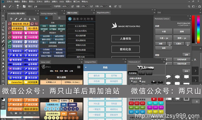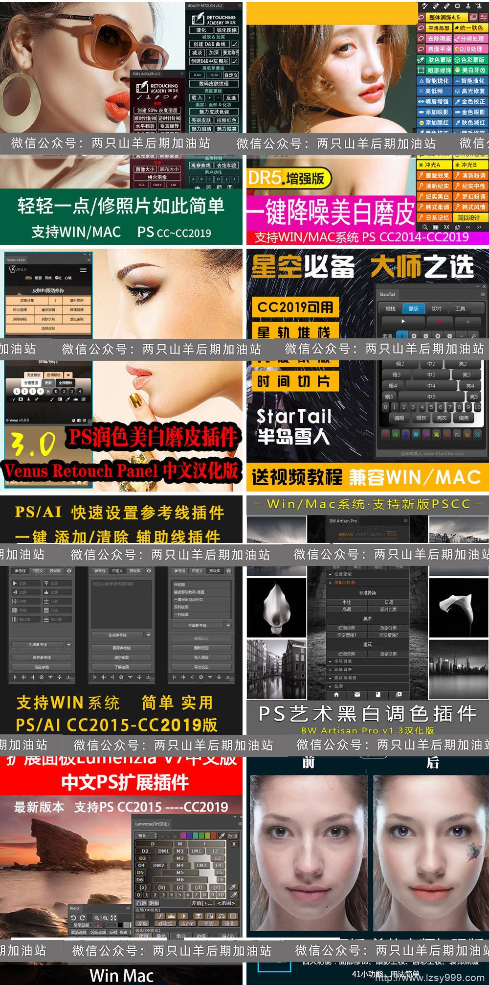 含摄影师必备的最新插件:DR5一键磨皮美白插件、维纳斯3.0人像修饰插件、一键添加冲光、星轨堆栈
