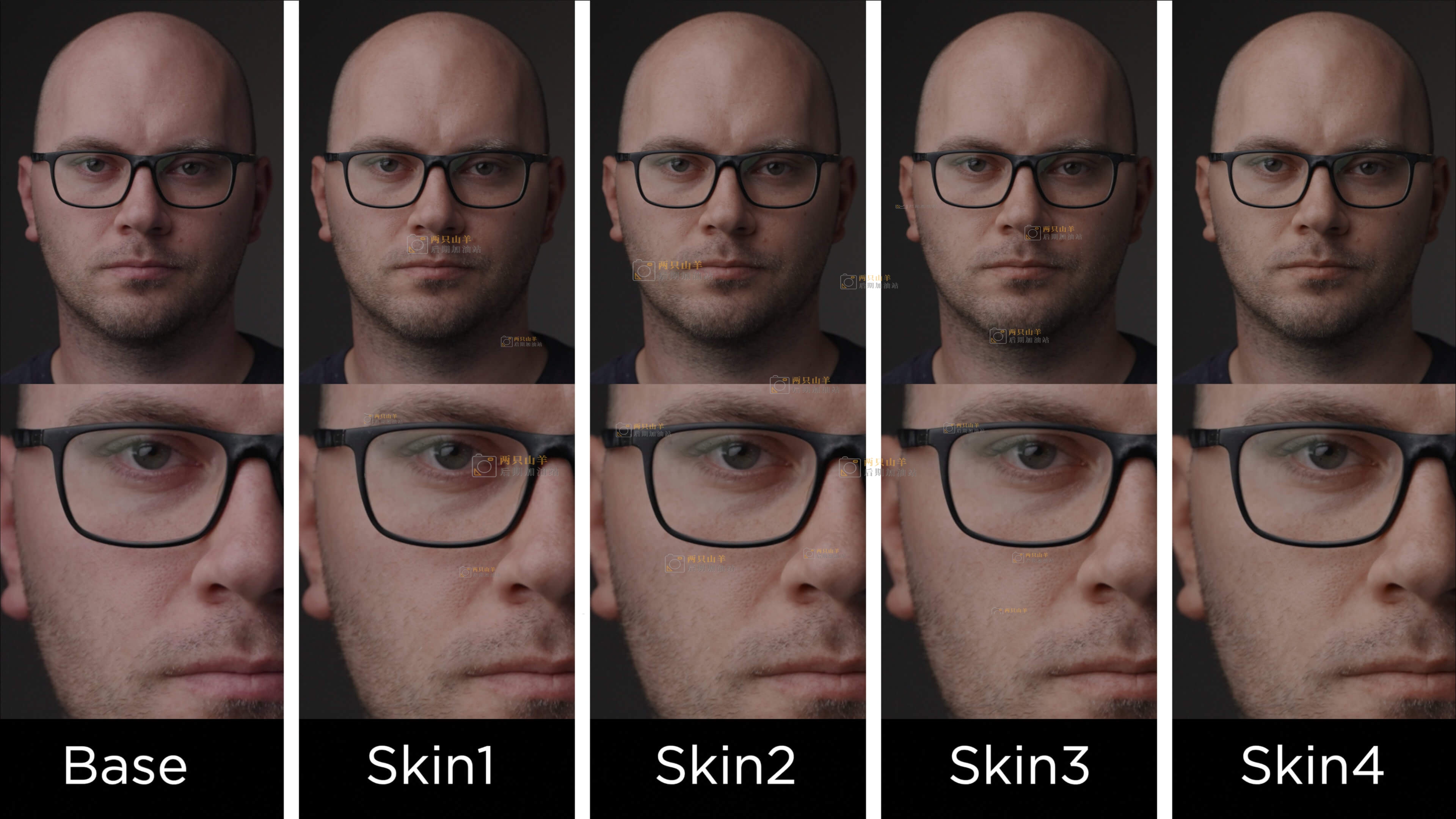 肤色偏移 LUT 从基础(无偏移)到蒙皮4(强)