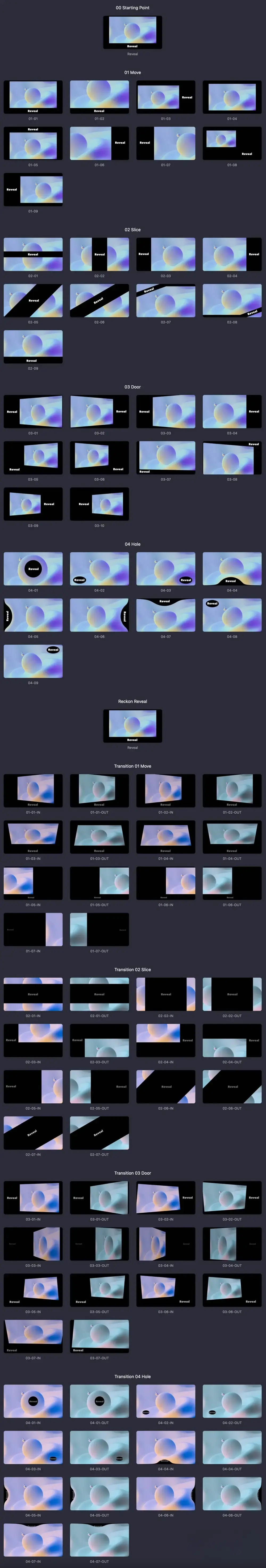 Reckon Reveal是一款用于增强视频效果插件。提供动态揭示功能(分割、撕裂、圆形镂空等),支持平滑动画和关键帧调整,内置标题效果以提升文本可读性。背景选项丰富(纯色、渐变、自定义内容),可作为标题模板或效果使用,还能创建无缝过渡,操作灵活且不影响时间线。