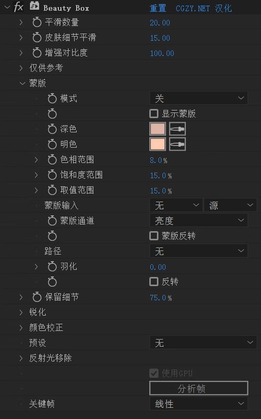 AE/PR中文插件-(更新)视频磨皮人像美容润肤美颜工具 Beauty Box 5.1.1 中文汉化 支持Win