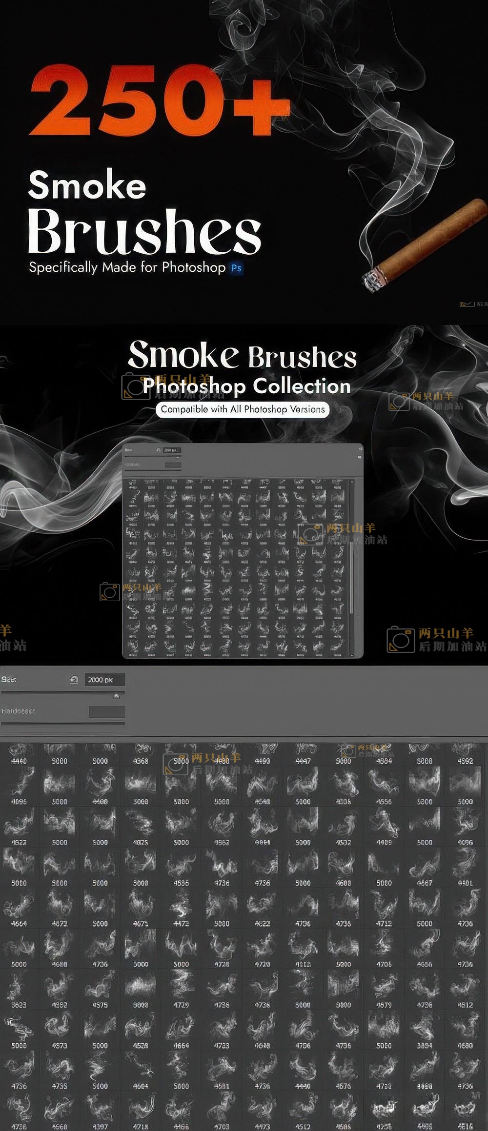PS笔刷-250种烟雾笔刷包 Smoke Brushes Pack for Photoshop