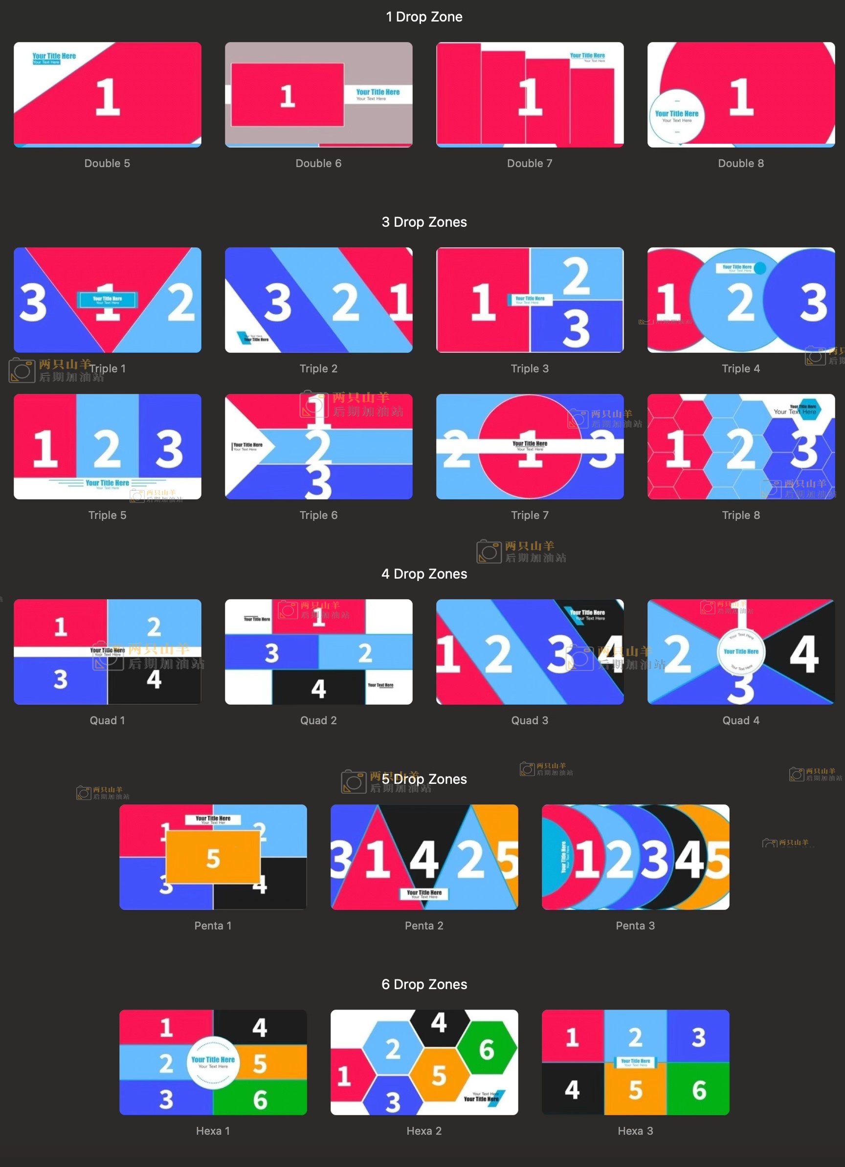 FCPX中文插件-30种时尚创意多画面网格拼贴分屏动画 Chop Pop