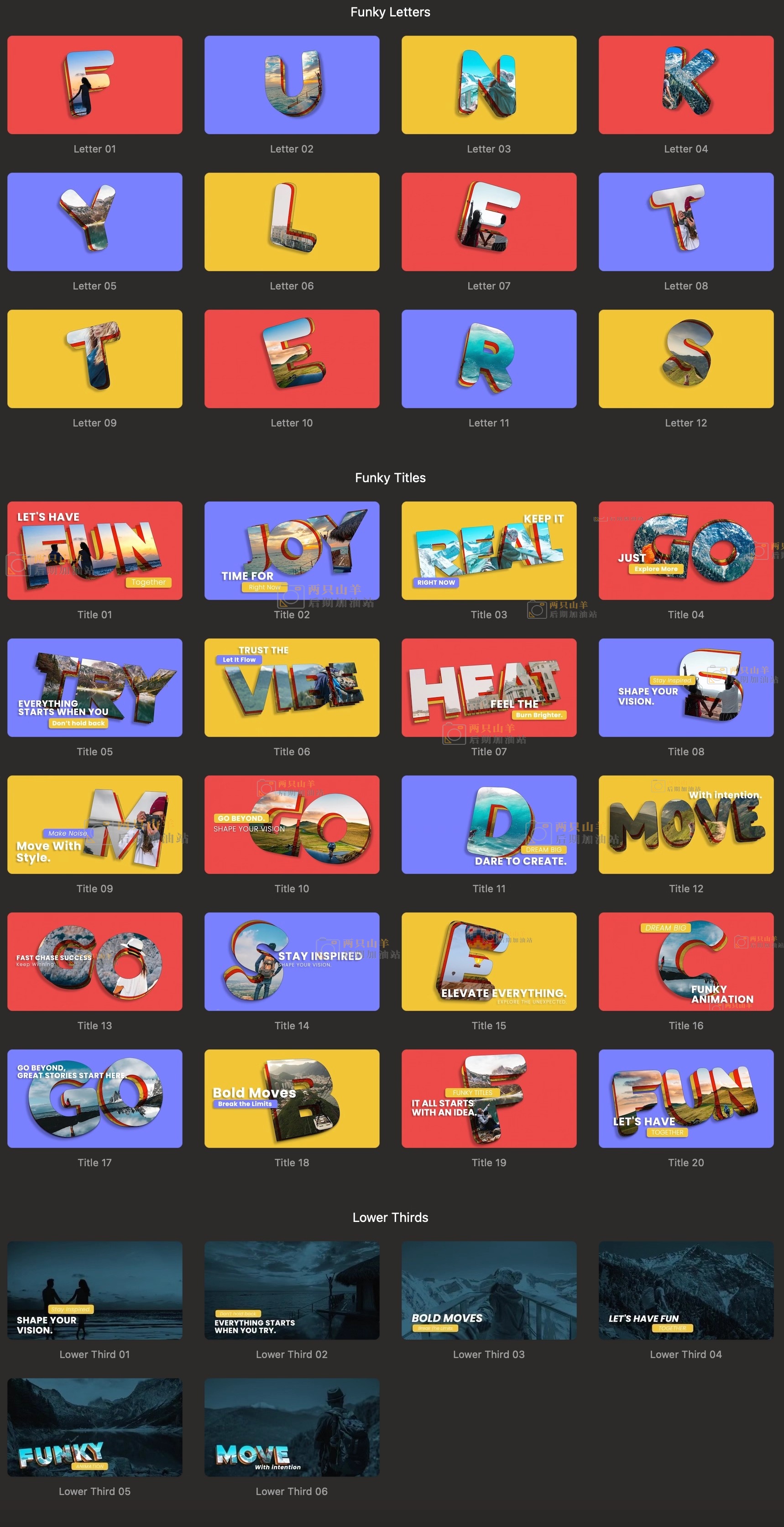 FCPX中文插件-38组创意有趣字母镂空效果图文展示动画 Funky Titles