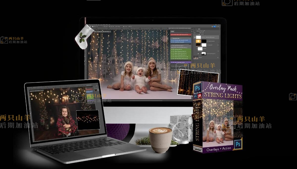 25种独特的灯串覆盖:用漂亮的灯串和柔和的光线照亮任何图像。完美定制,在较暗的背景下闪耀。这些是独立的工具,不包含在圣诞套装中。