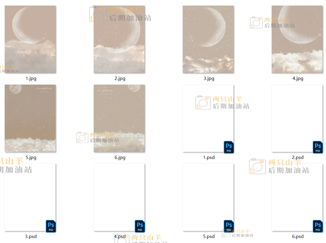 PSD模板-6款高级感梦幻月亮月球光影主题婚纱写真婚纱照室内影楼摄影PS背景素材