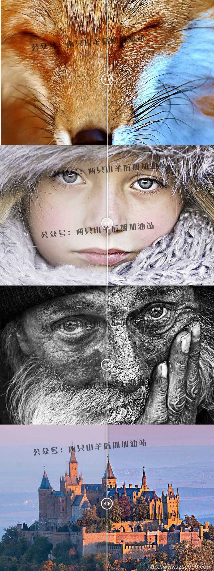 有8种滤镜, 1 种胶片颗粒和9种光泄效果。这三组可以相互结合, 当然还有其他工具。所有工具都是一键式工具-非常容易使用和安装!