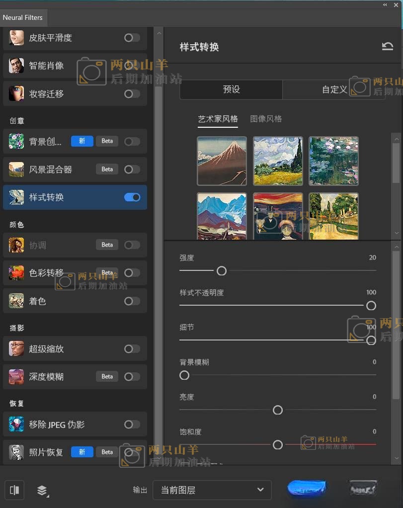 离线支持:提供 Neural Filters 离线安装包,解决网络限制问题,但需注意正版授权方可使用全部 AI 功能。