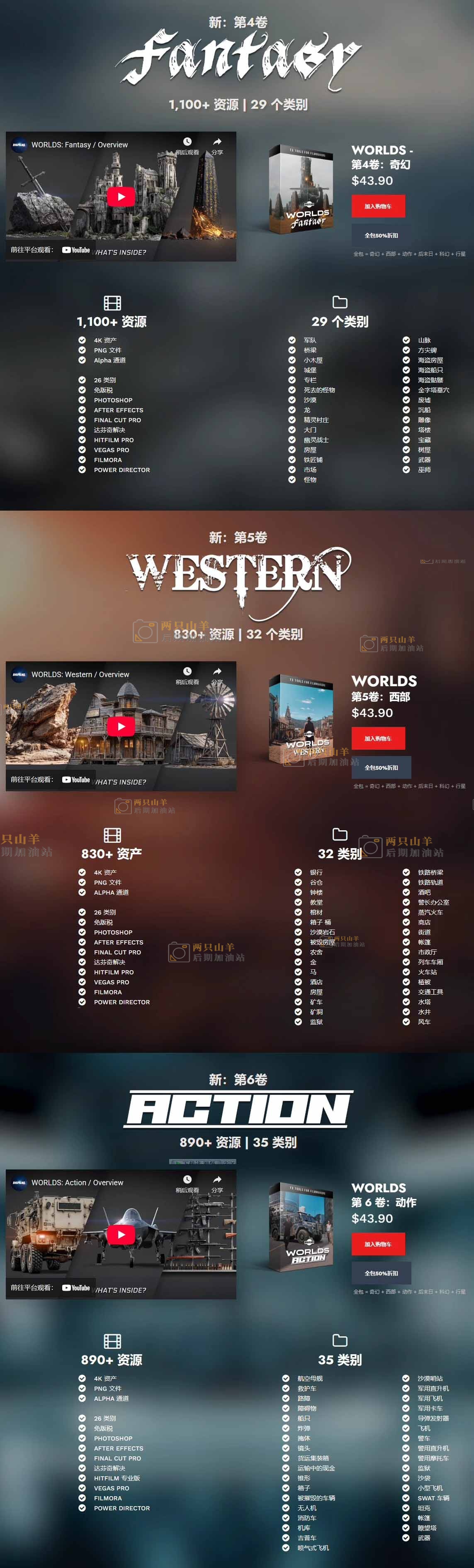 3000张奇幻西部动作场景特效合成透明PNG图片素材3套 Bigfilms – WORLDS Pack (Vol. 4 + 5 + 6)