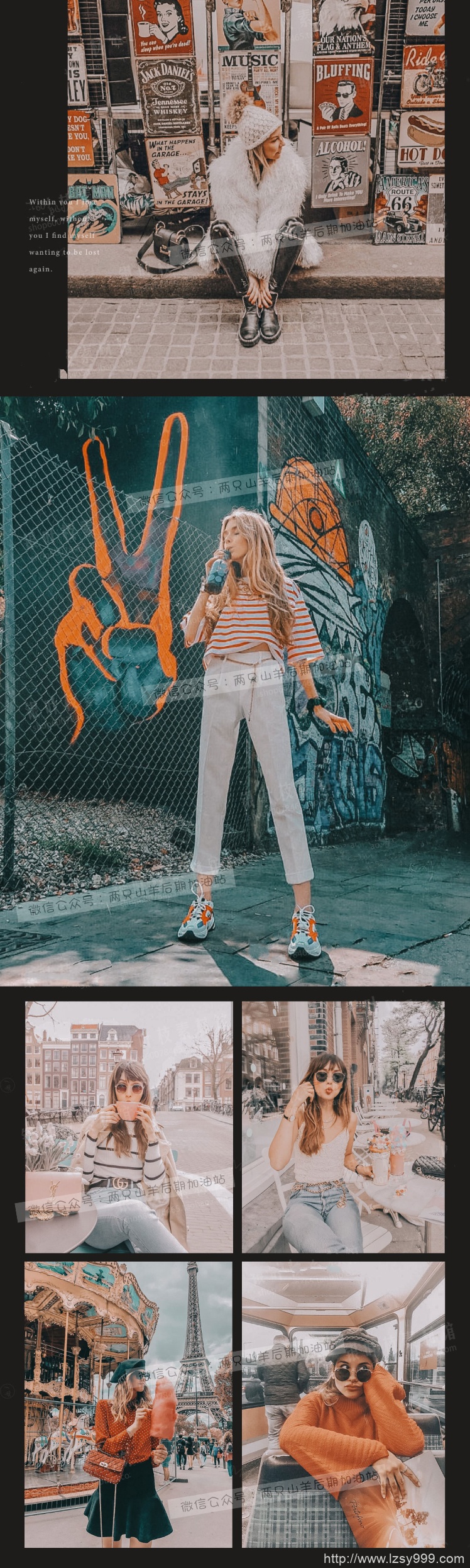 预设-6款欧美ins复古焦糖色, LR预设PS人像街拍旅拍PR/FCPX调色手机滤镜LUT