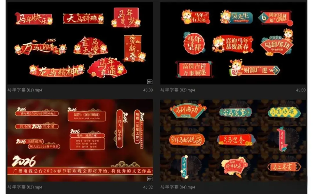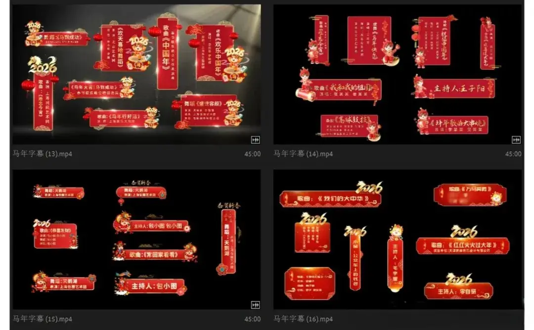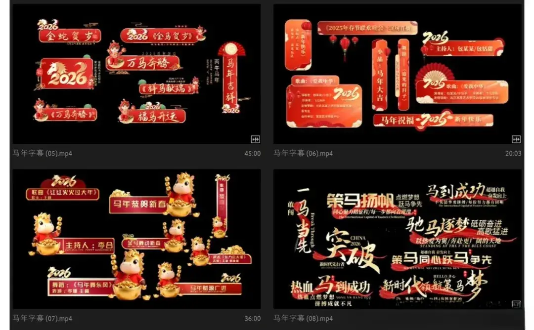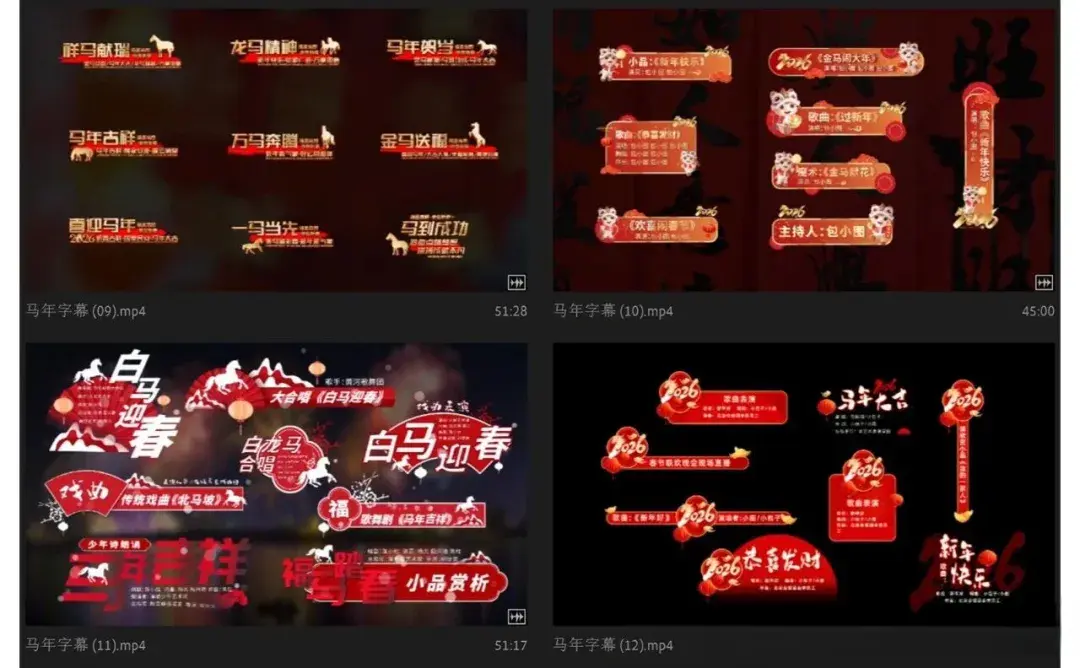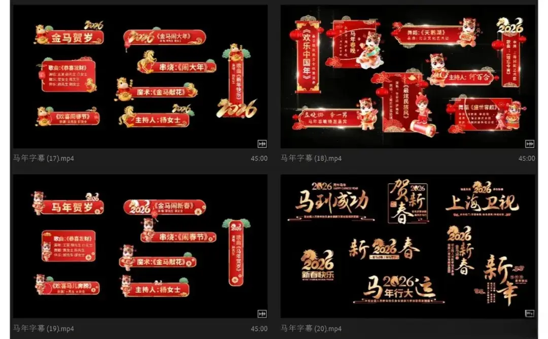 AE模板-21套2026马年新年春节晚会节目表演字幕条花字祝福角标文字