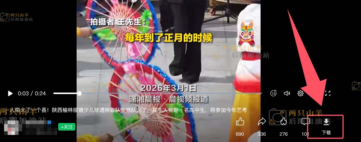 3、打开微信视频号页面,页面会自动缓存视频,视频缓存完,右下角会出现下载按钮,点击按钮即可下载