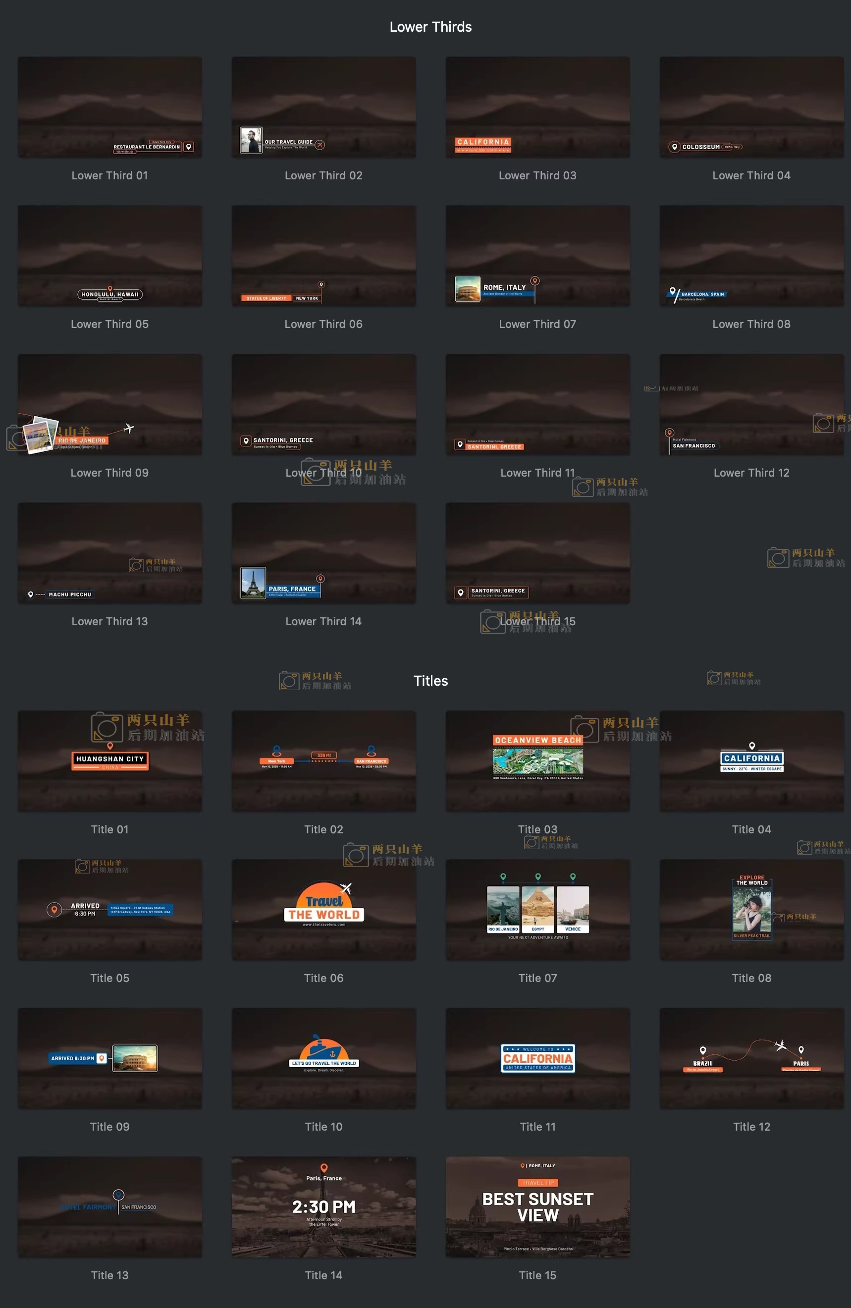 Globe Titles是一套用于Final Cut Pro的旅行主题动画标题与字幕模板合集,适合旅游、Vlog、生活方式和城市探索类视频。