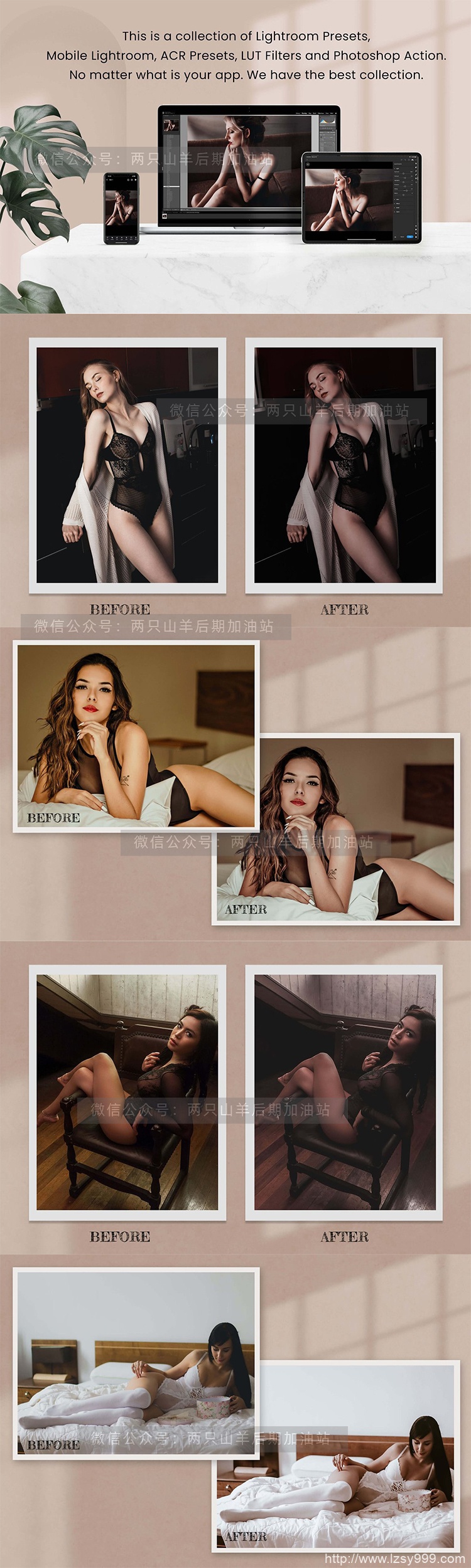 预设-时尚高端私房闺房孕妇人像Lightroom/PS预设及PR/AE/FCPX/达芬奇通用LUT预设 Boudoir Lightroom Photoshop ACR LUTs