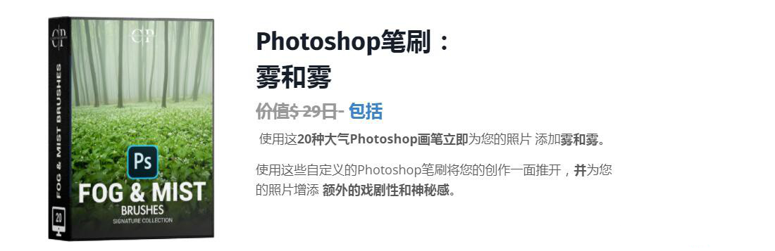 使用这20种大气Photoshop笔刷立即为您的照片 添加雾和薄雾。