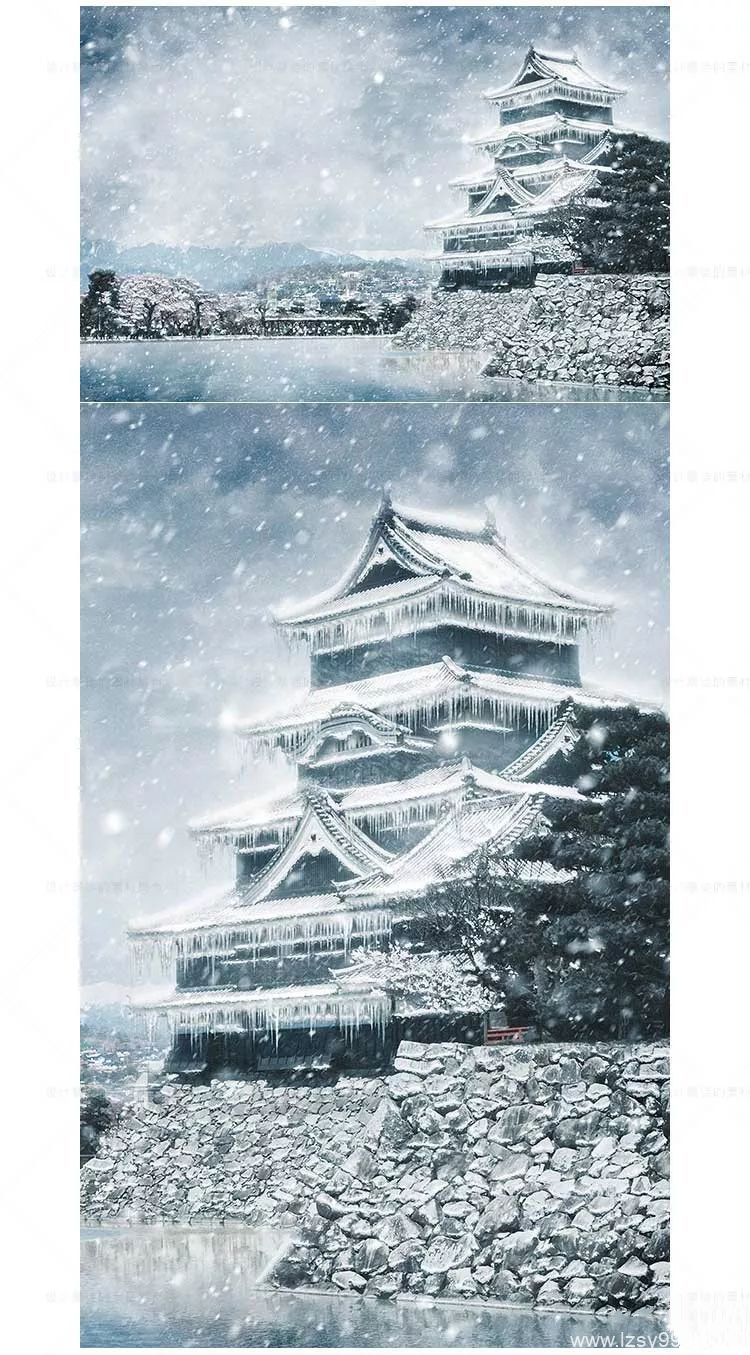 PS动作-PS雪景动作影楼后期合成素材插件 一键制作逼真的雪景图 下雪飘雪雪花