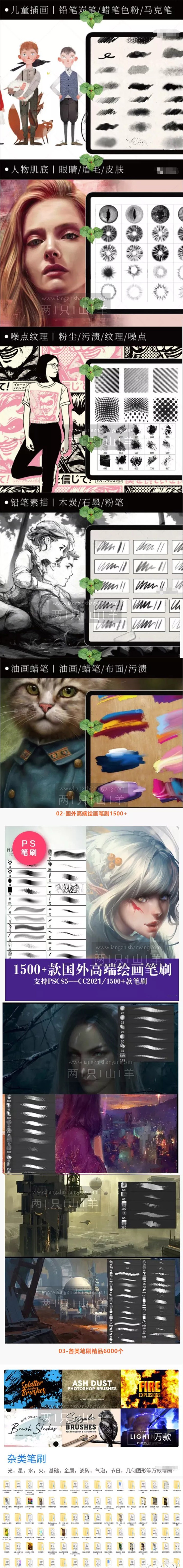 PS笔刷-PS全套笔刷整合版 万款笔刷合集(水彩、水墨、素描、纹理、油画、笔触、肌理)